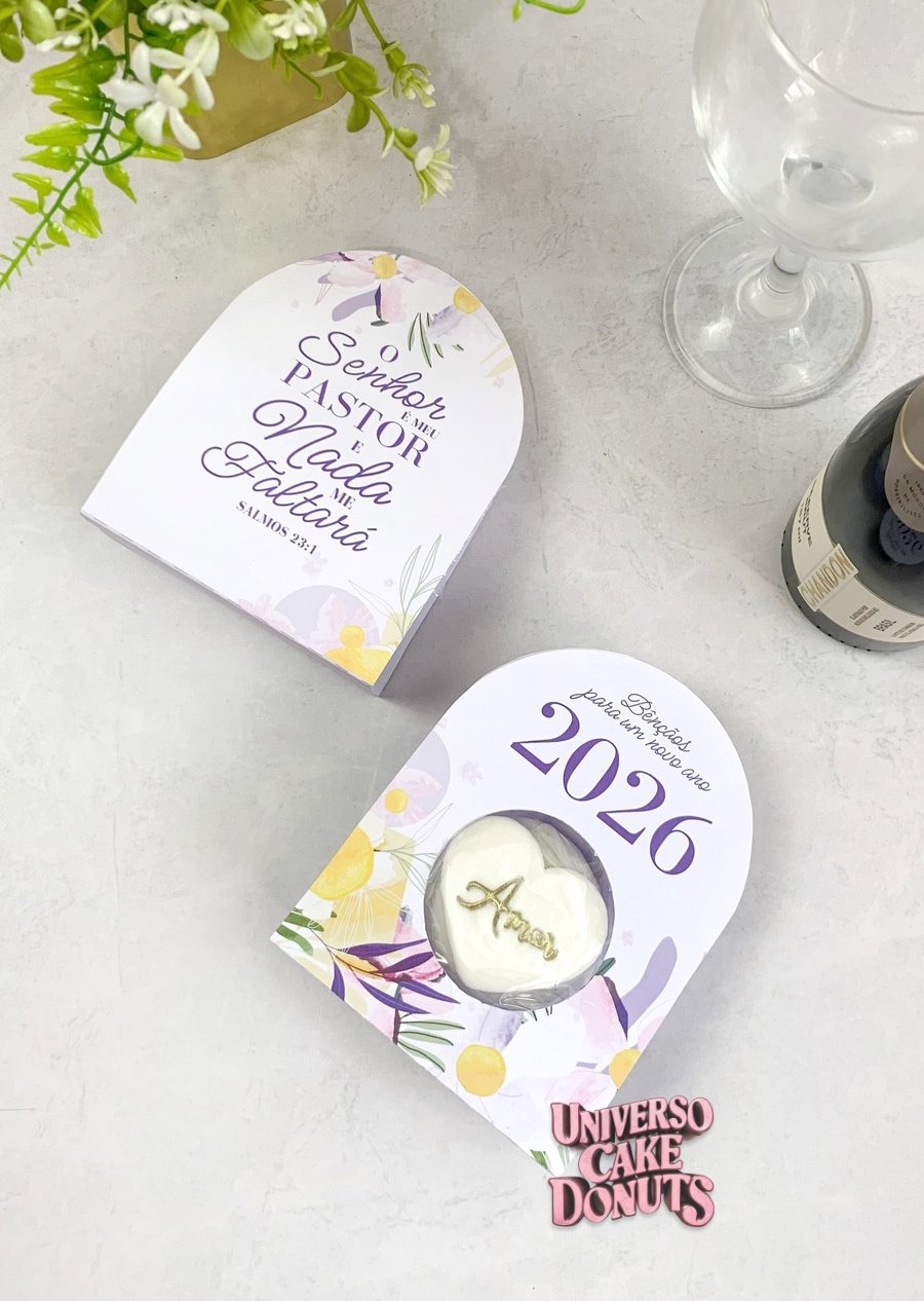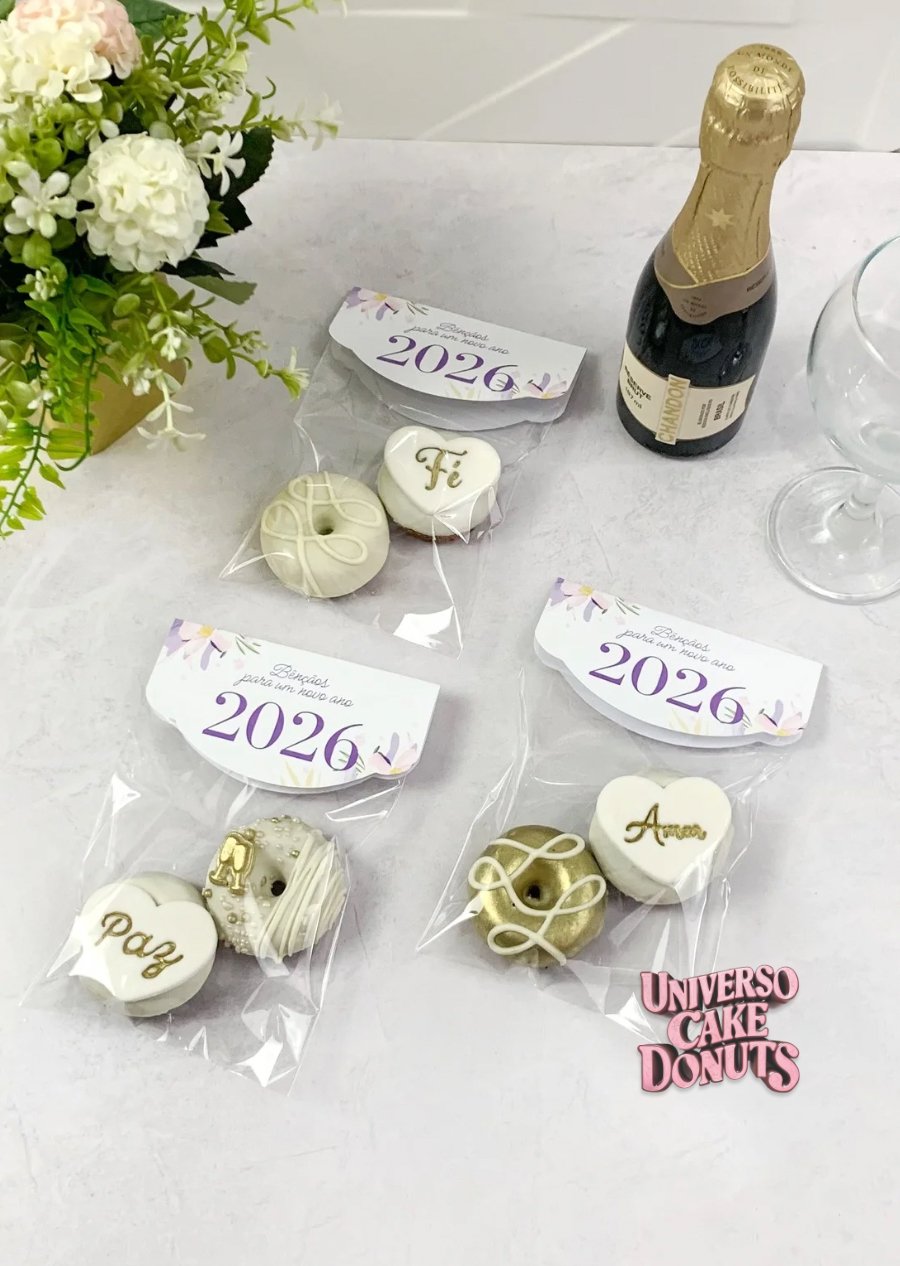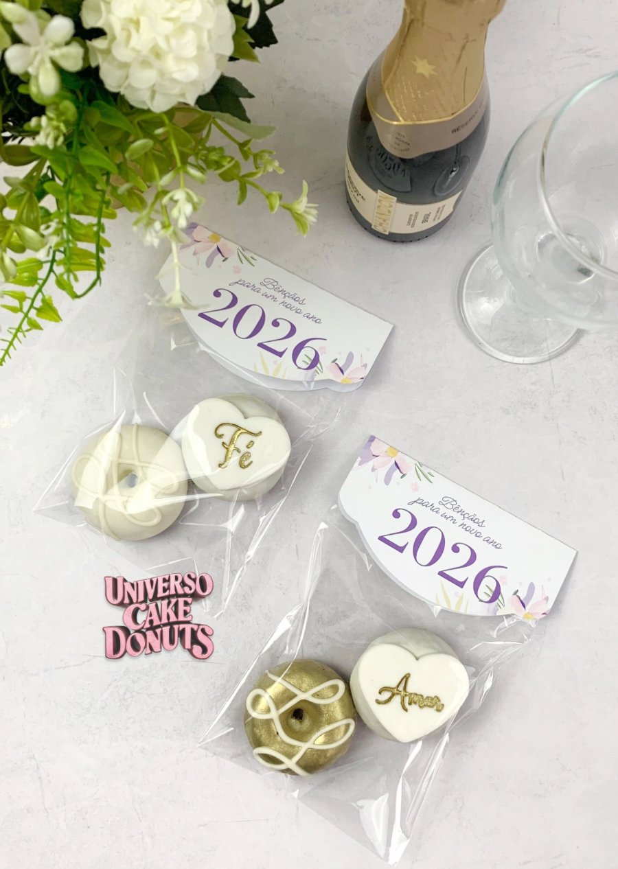 Transforme seus mini donuts em presentes natalinos encantadores com nossas embalagens temáticas de ano novo. Baixe, personalize e monte rapidamente, criando doces momentos de celebração em cada detalhe.