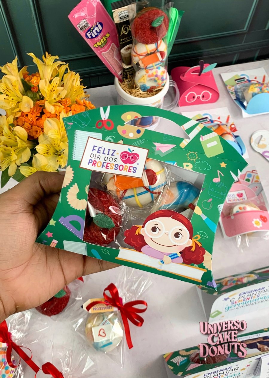 Transforme seus deliciosos cake donuts em presentes irresistíveis neste Dia dos Professores com nossos templates de embalagens exclusivos. Baixe, imprima e monte suas embalagens em minutos.